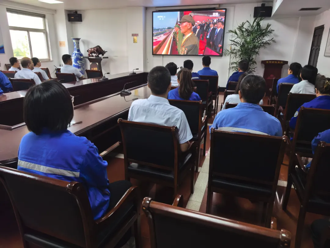 9月3日是中國人民抗日戰(zhàn)爭暨世界反法西斯戰(zhàn)爭勝利80周年紀念日。普陽鋼鐵集團組織各廠各部各單位集中觀看閱兵式,感受祖國軍事力量的強大,并將這種精神轉(zhuǎn)化為降本增效的實際行動,用自身因素降成本的亮眼成績向抗戰(zhàn)勝利致敬!