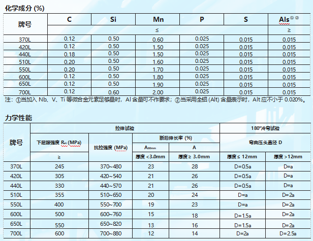 大梁是載貨車主要的承載部件,幾乎承載著貨物全部的重量,大梁的質(zhì)量影響整車的使用壽命與行車安全,制造??汽車大梁一般采用沖壓成型工藝,其變形方式以彎曲為主,因此大梁板對(duì)成型性要求較高。普陽可生產(chǎn)370L、420L、?440L、510L、550L、600L、650L、700L汽車大梁鋼。產(chǎn)品具有良好的強(qiáng)韌性、耐疲勞性和冷成型性。